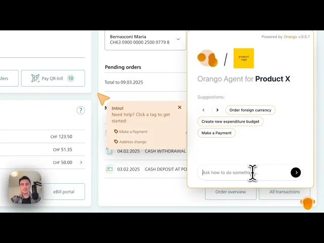 In-product AI agent – Guides users through the interface and assists with tasks.